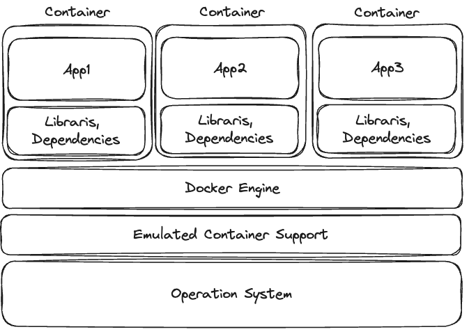 이렇게 각 App마다 VM을 사용하게 되고, 이 Virtual OS는 메모리, CPU등의 사용량이 높다.