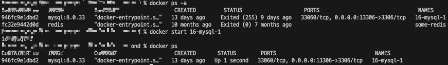 이렇게 종료된 컨테이너를 재실행한 것을 볼 수 있다.