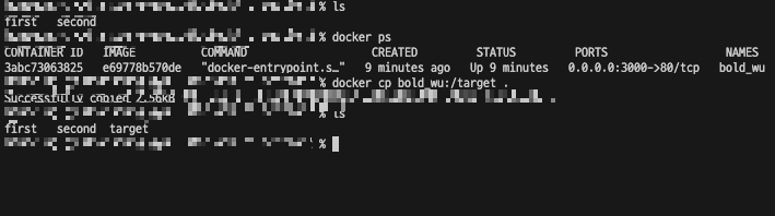 docker cp {container name}:{복사하려는 경로} {복사하려는 파일 혹은 폴더}