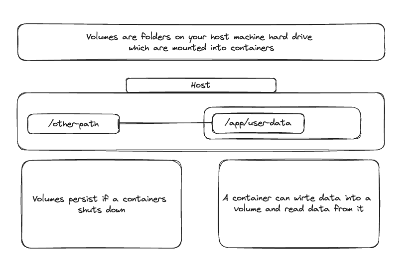 volume은 호스트 머신의 폴더이다. 컨테이너나 이미지에 있는 것이 아니다.
