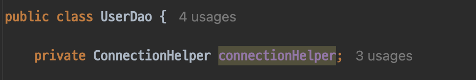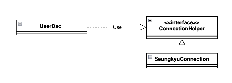 UserDao가 내부에서 이렇게 ConnectionHelper를 사용하기 때문이다.