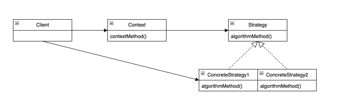 좌측의 Context의 contextMethod()에서 일정한 구조를 가지고 동작하다가 특정 확장 기능은 Strategy 인터페이스를 통해 외부의 독립된 전략 클래스에 위임하는 것이다.