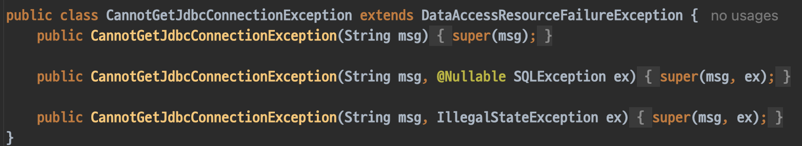 CannotGetJdbcConnectionException도 DataAccessException을 상속받는다.