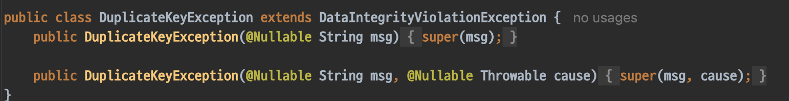 DuplicateKeyException도 최종적으로는 DataAccessException을 상속받고,
