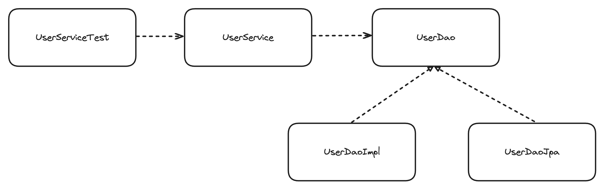 처음 생각으로는 UserDao에 add 부분을 수정해서 기본적으로 BRONZE 레벨을 줄 수 있지만, UserDao는 데이터베이스에만 관심을 가지고 비즈니스 로직은 위와같이 분리하는 것이 맞다고 생각이 들었다.