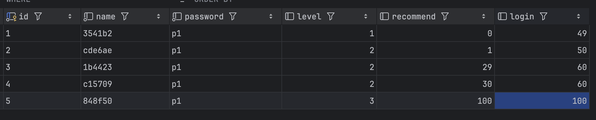 User.builder().id("3").name(uuidHelper()).password("p1").level(Level.SILVER).login(60).recommend(29).build(),