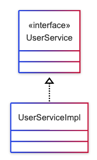 이렇게 UserService를 인터페이스로 만들고, UserServiceImpl로 구현해 사용하고 있다.
