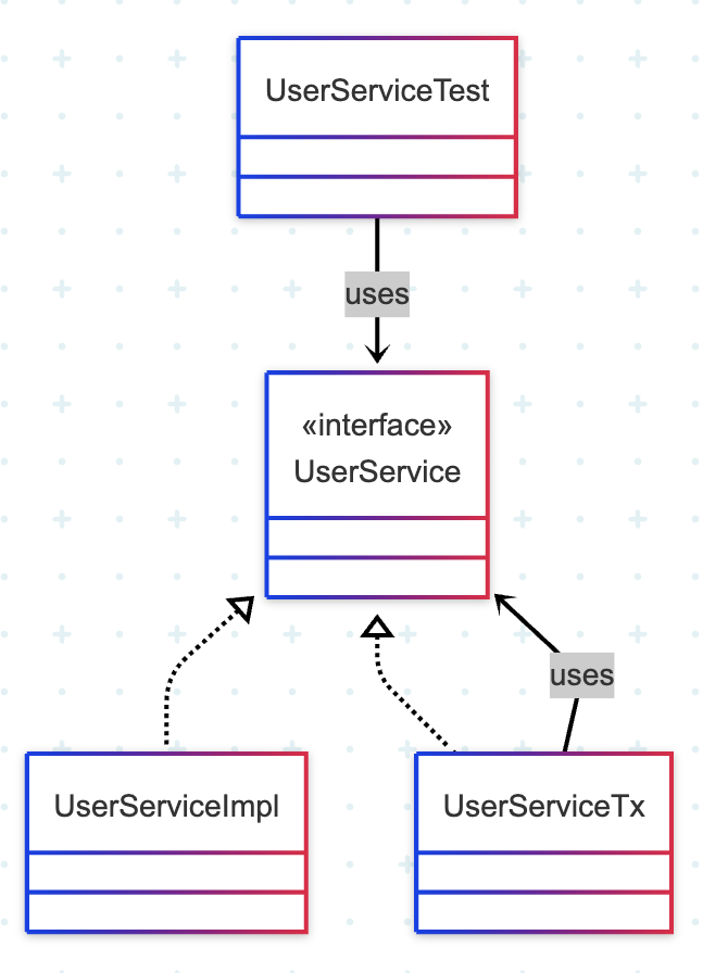 UserServiceImpl에 비즈니스 로직을 담고, UserServiceTx는 트랜잭션을 담당하도록 만들고 싶다.