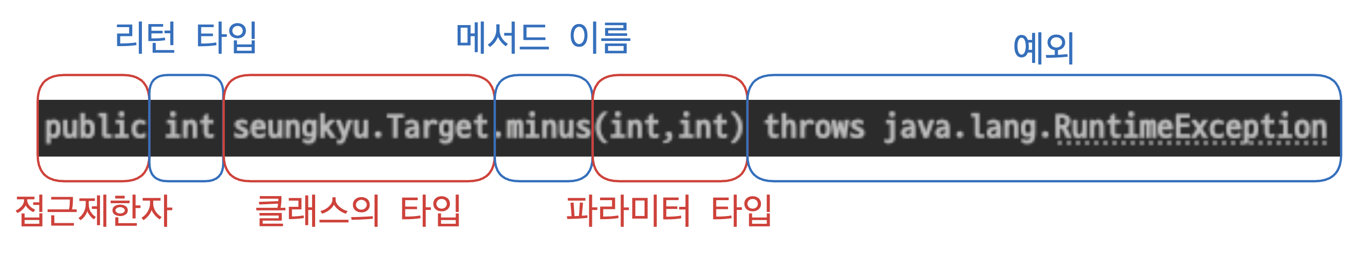 pointcut.setExpression("execution(public int seungkyu.Target.minus(int, int) throws java.lang.RuntimeException)");