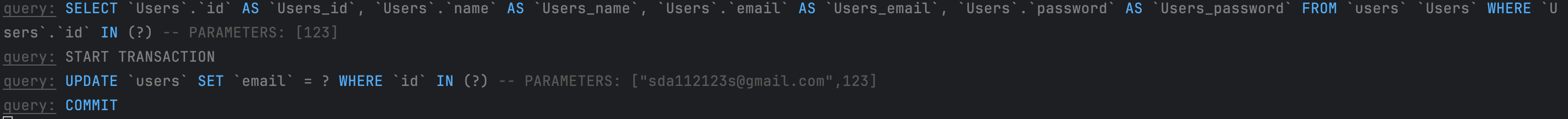 역시 where절의 조건으로 name을 추가해주었고, 하나의 엔티티만 가져오는 것이 아니기 때문에 find() 메서드를 사용한다.