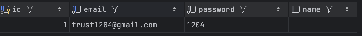 우선 현재 데이터베이스에는 해당 값만 존재한다.
