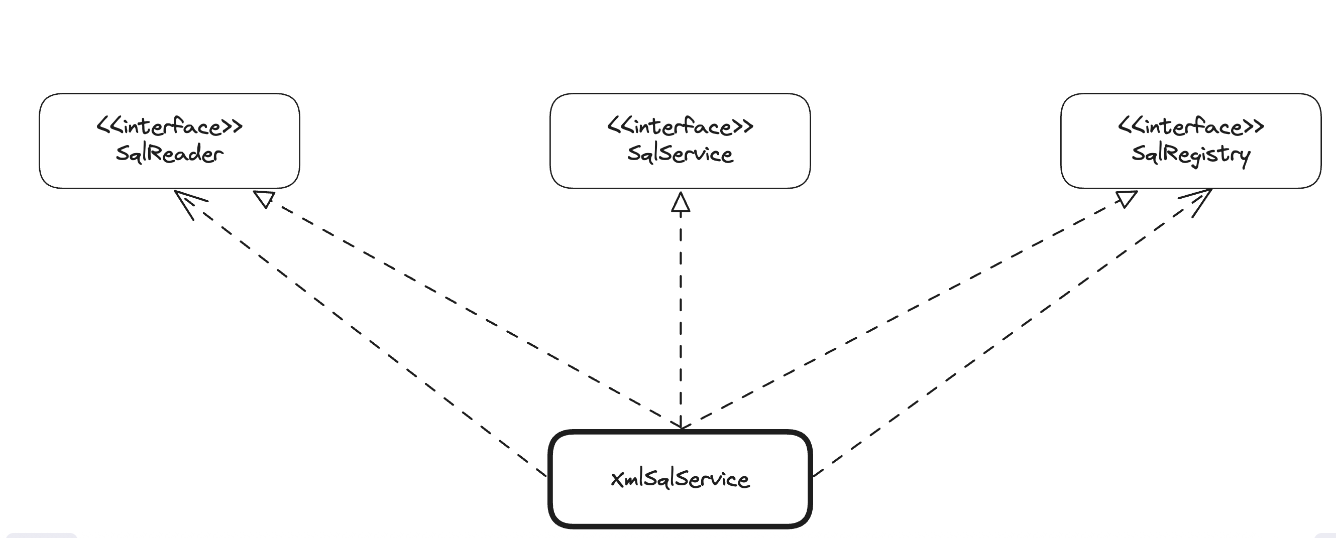 하지만 너무 구조가 복잡하기에 XmlSqlService가 다른 3개의 인터페이스를 구현하도록 만드는 방법도 있다.