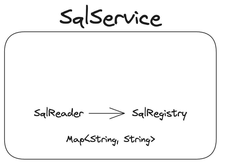 SqlService는 생성시 혹은 사용 전에 SqlReader를 통해 SqlRegistry에 sql을 등록해야 한다.