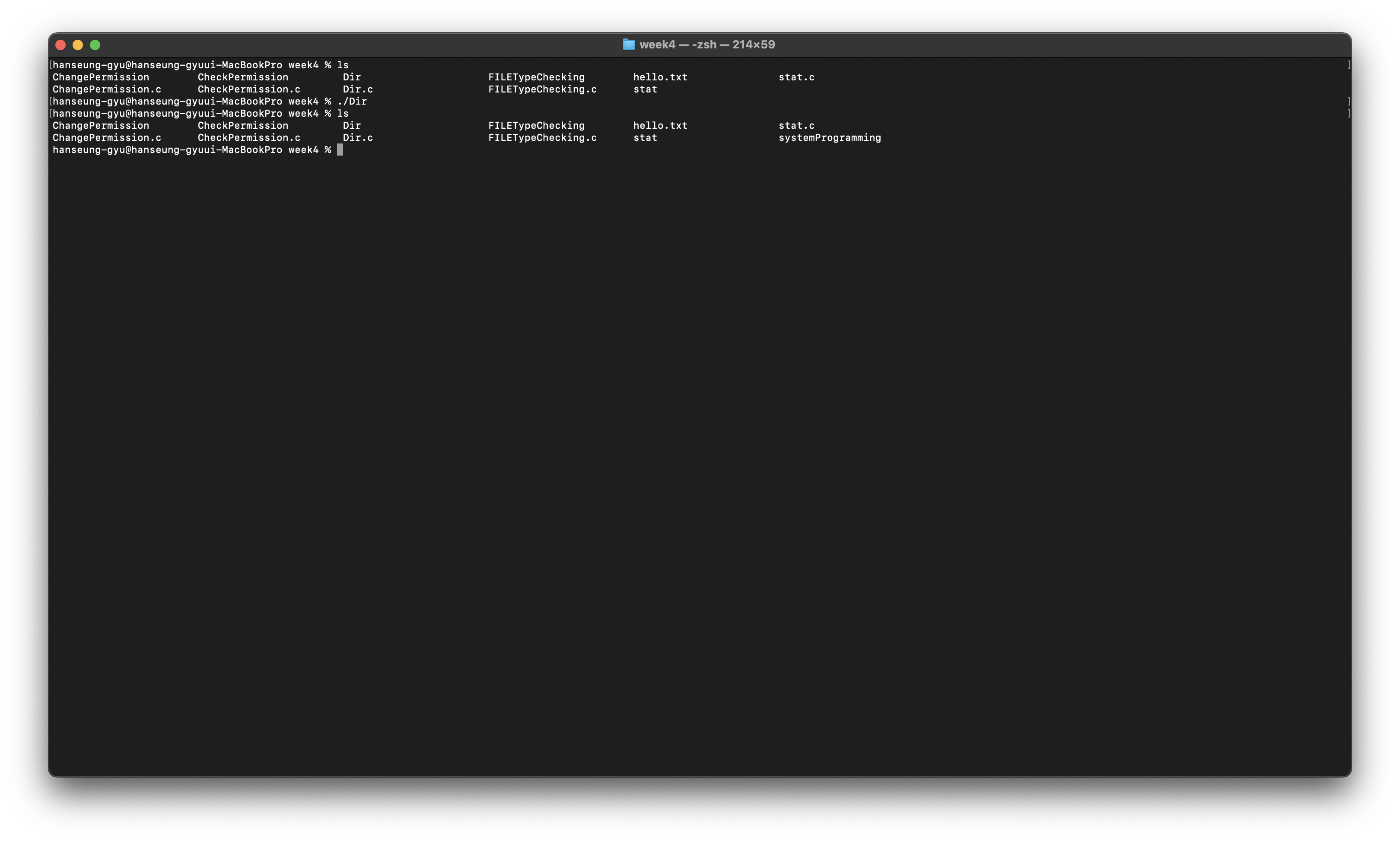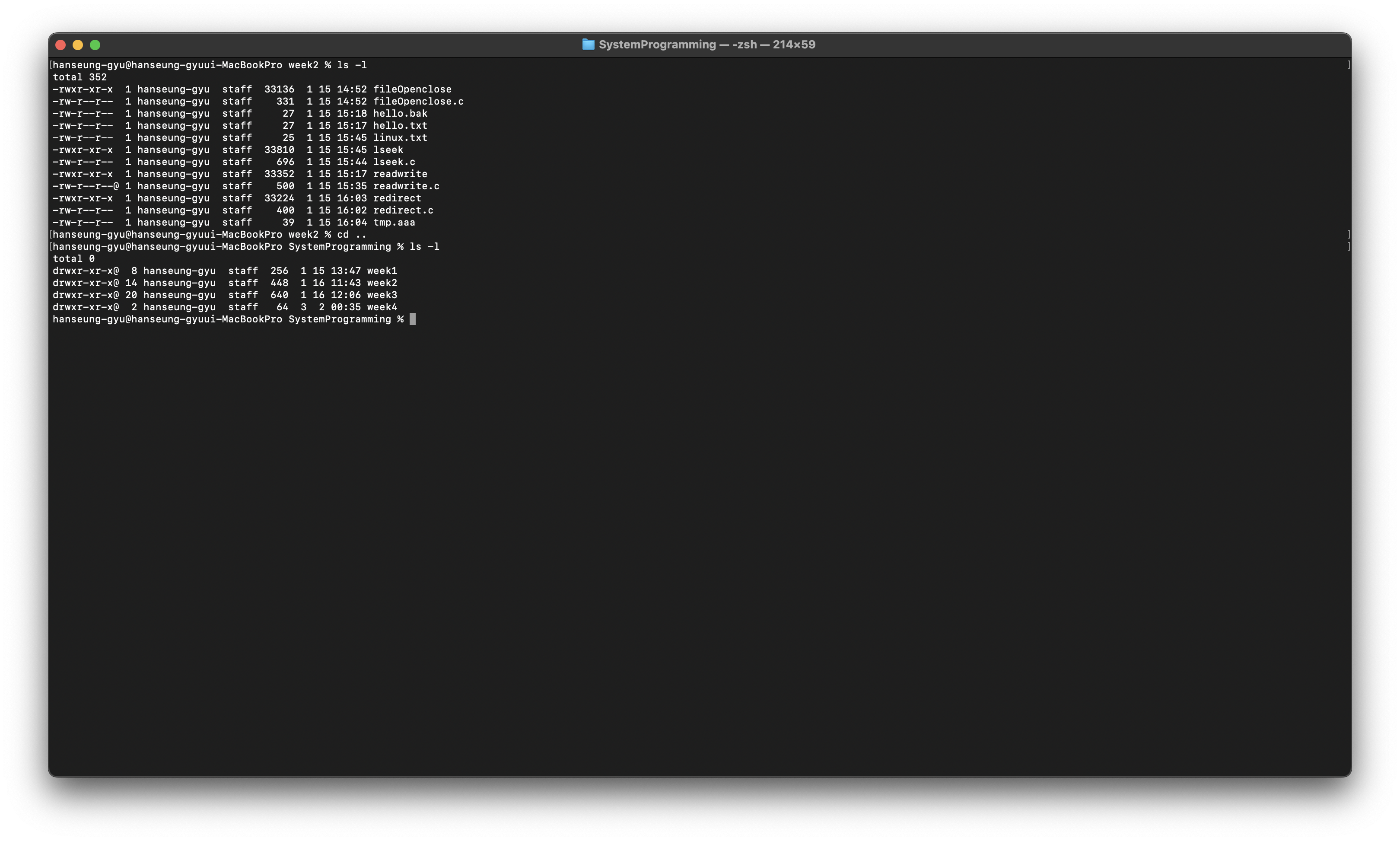 이렇게 systemProgramming directory에 들어있는 모든 파일들이 순서대로 출력되는 것을 볼 수 있다.
