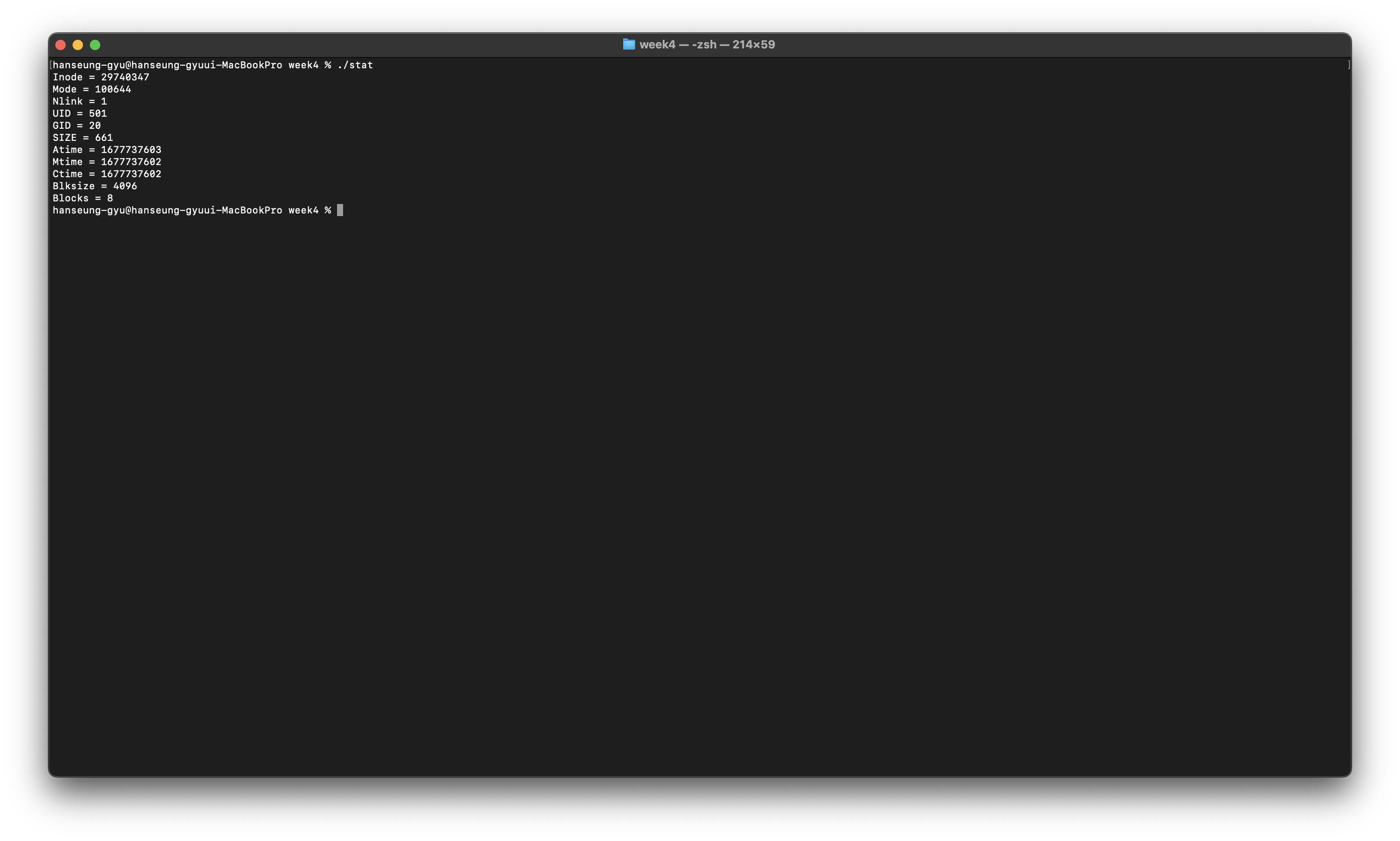 함수와 구조체를 이용하여 i-node의 정보를 가져오는 코드를 작성해보자.