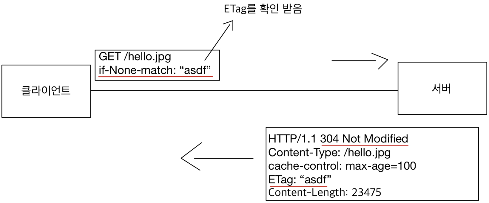 다시 클라이언트에서 요청할 경우 ETag를 같이 확인 받는 방법이다.