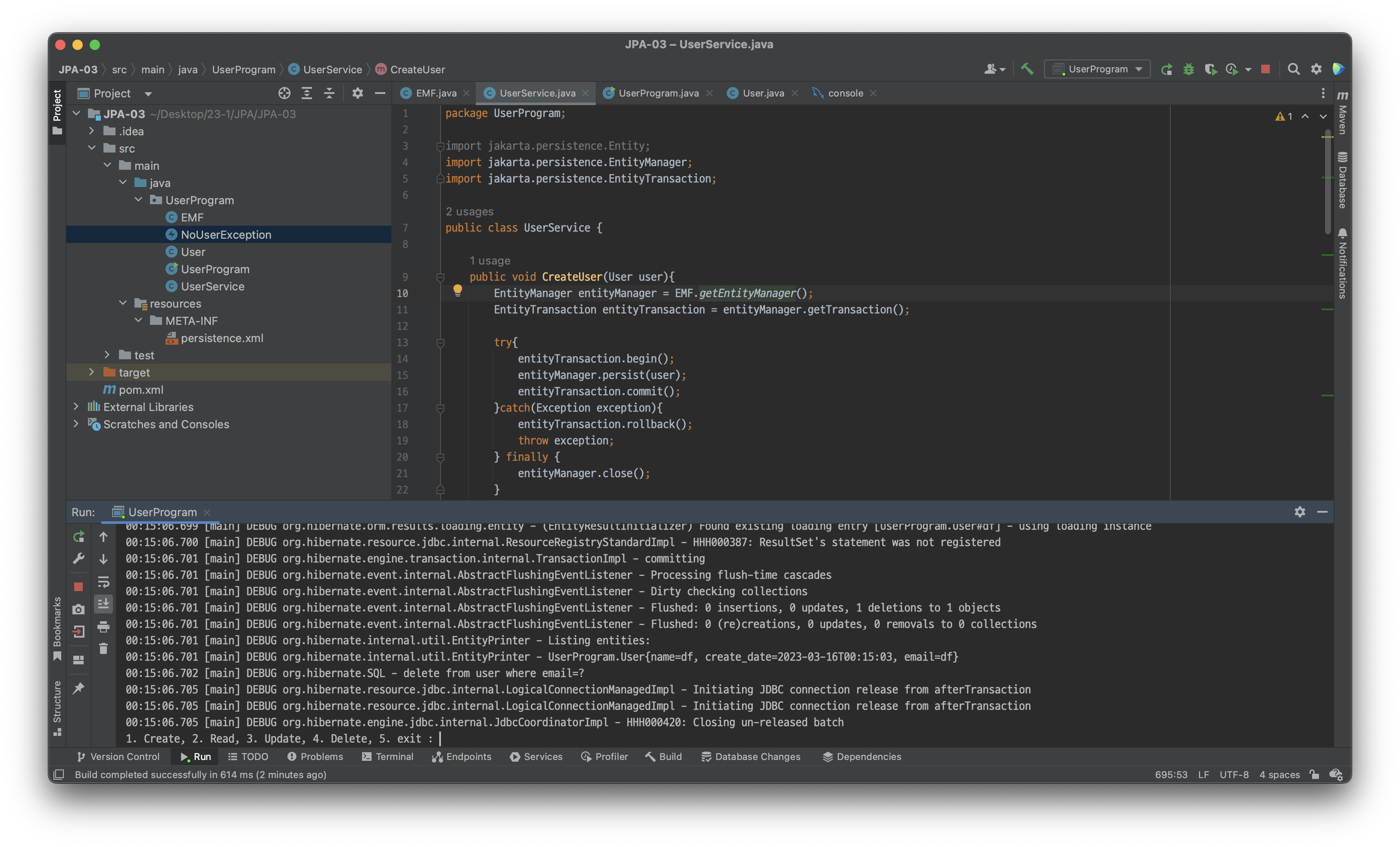 우선 저번에 배운 CRUD를 사용하였고, 다른 점이 있다면 static으로 작성된 EntityManagerFactory를 사용하였다.