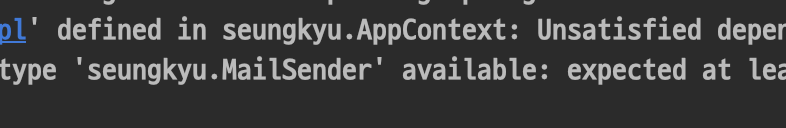 MailSender를 가져오지 못해 실패하는데, 따로 저 profile을 활성화해주지 않아 에러가 발생하는 것이다.