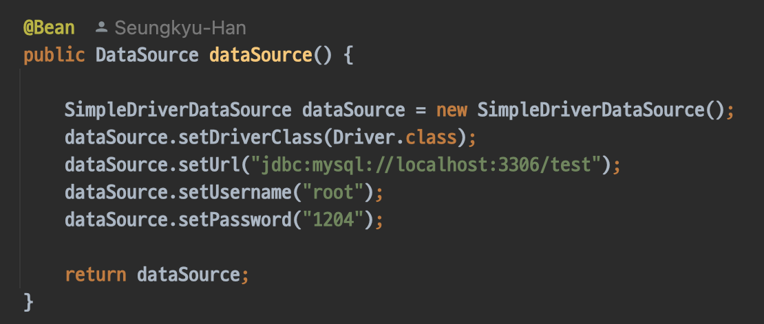 이제 저 EmbeddedDbSqlRegistry에 DataSource를 주입해줘야 한다.