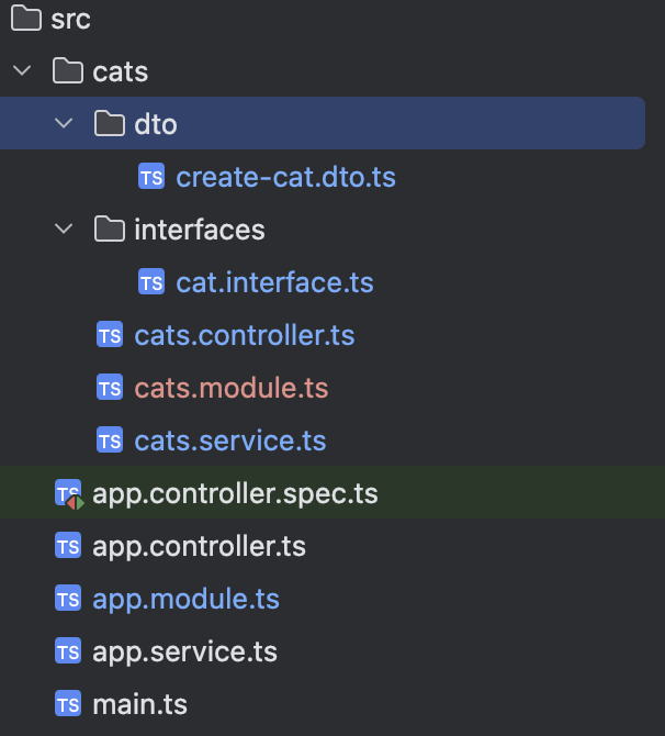 우리의 예시에서 CatsController와 CatsService는 매우 밀접한 관계가 있었으며, 같은 애플리케이션 도메인에서 제공되었었다.