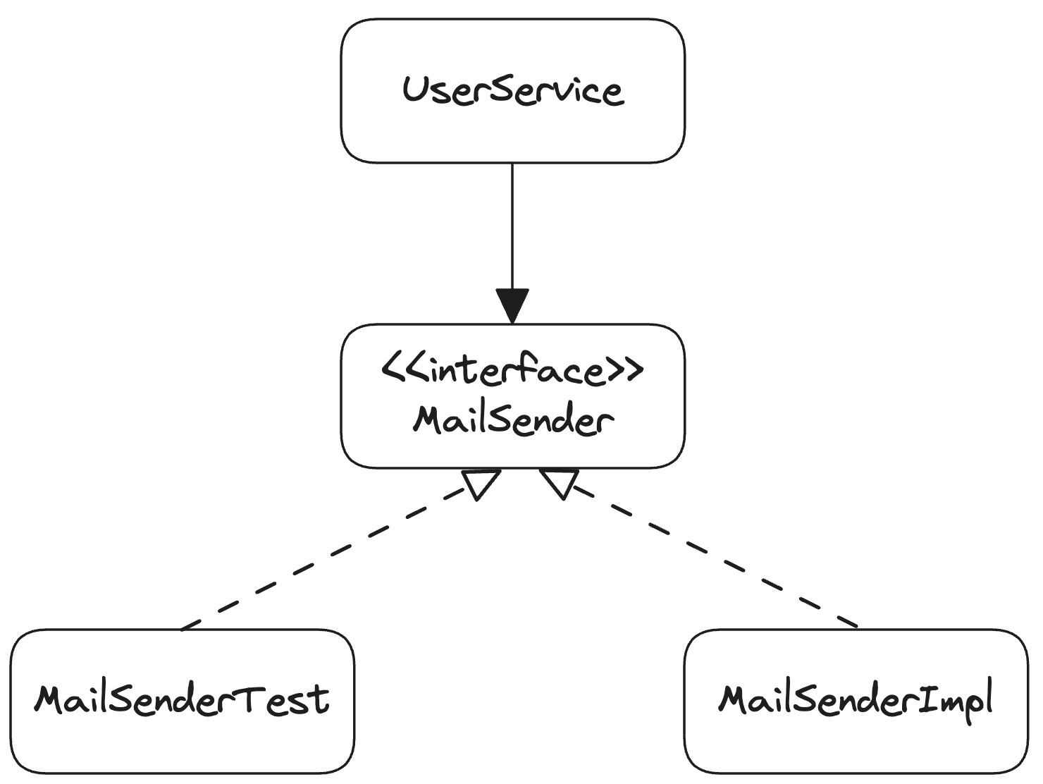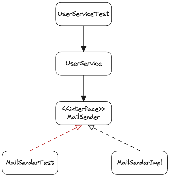 그렇기에 테스트 단계에서는 실제로는 메일이 전송되지 않는 다른 클래스를 사용해도 괜찮다.