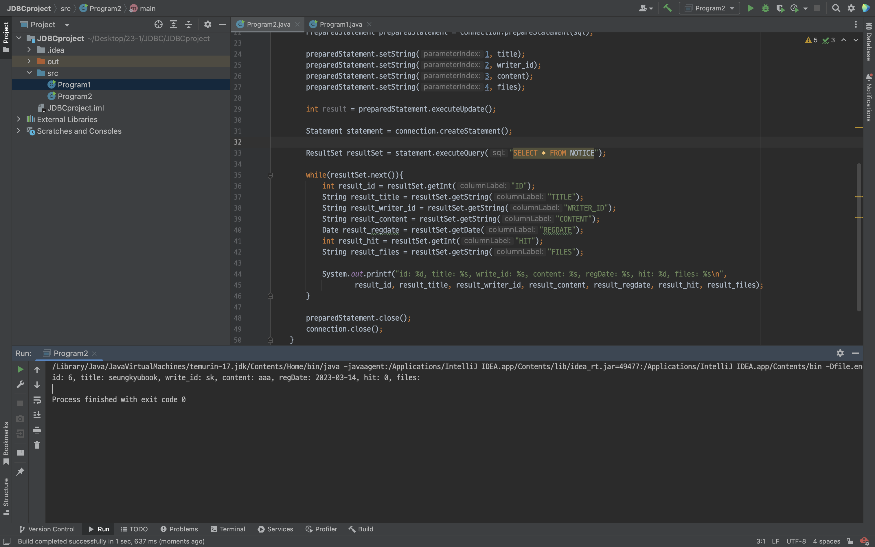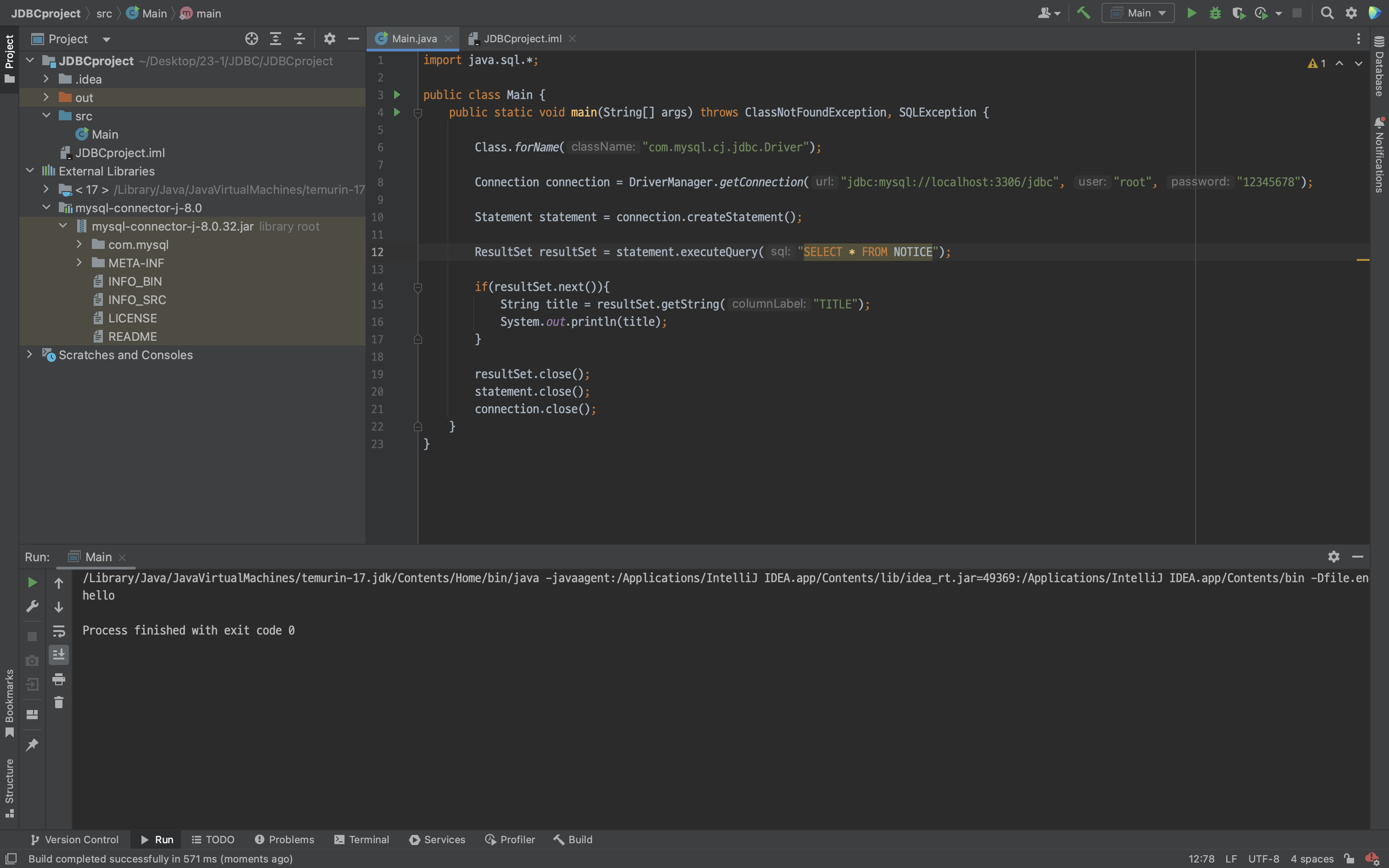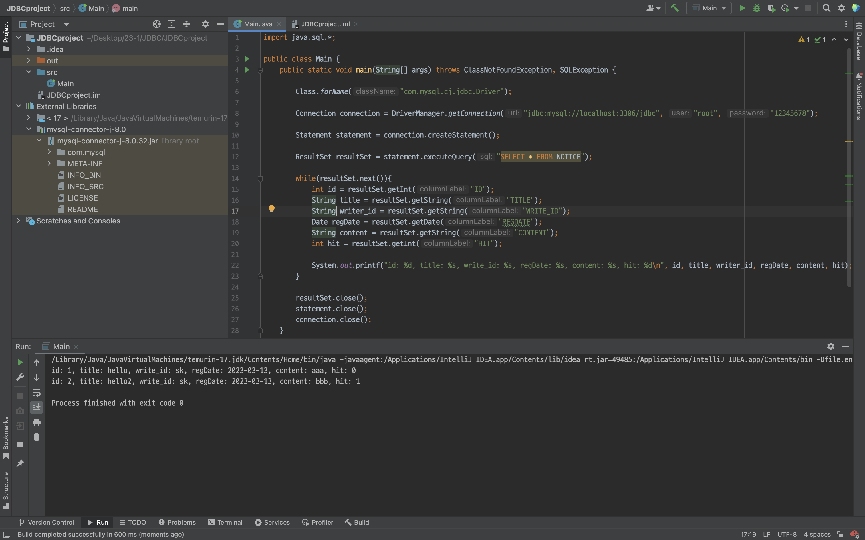 ResultSet resultSet = statement.executeQuery("SELECT * FROM NOTICE");