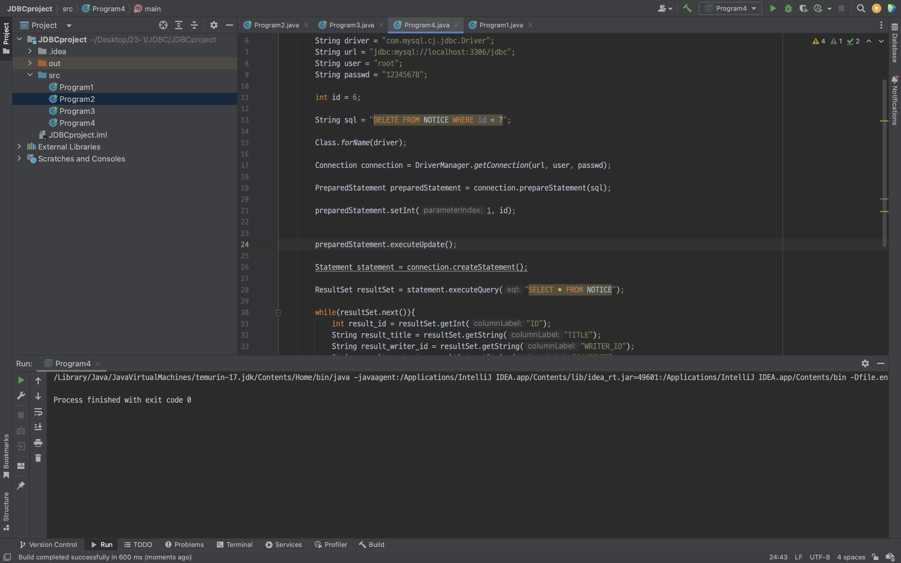 String sql = "DELETE FROM NOTICE WHERE id = ?";