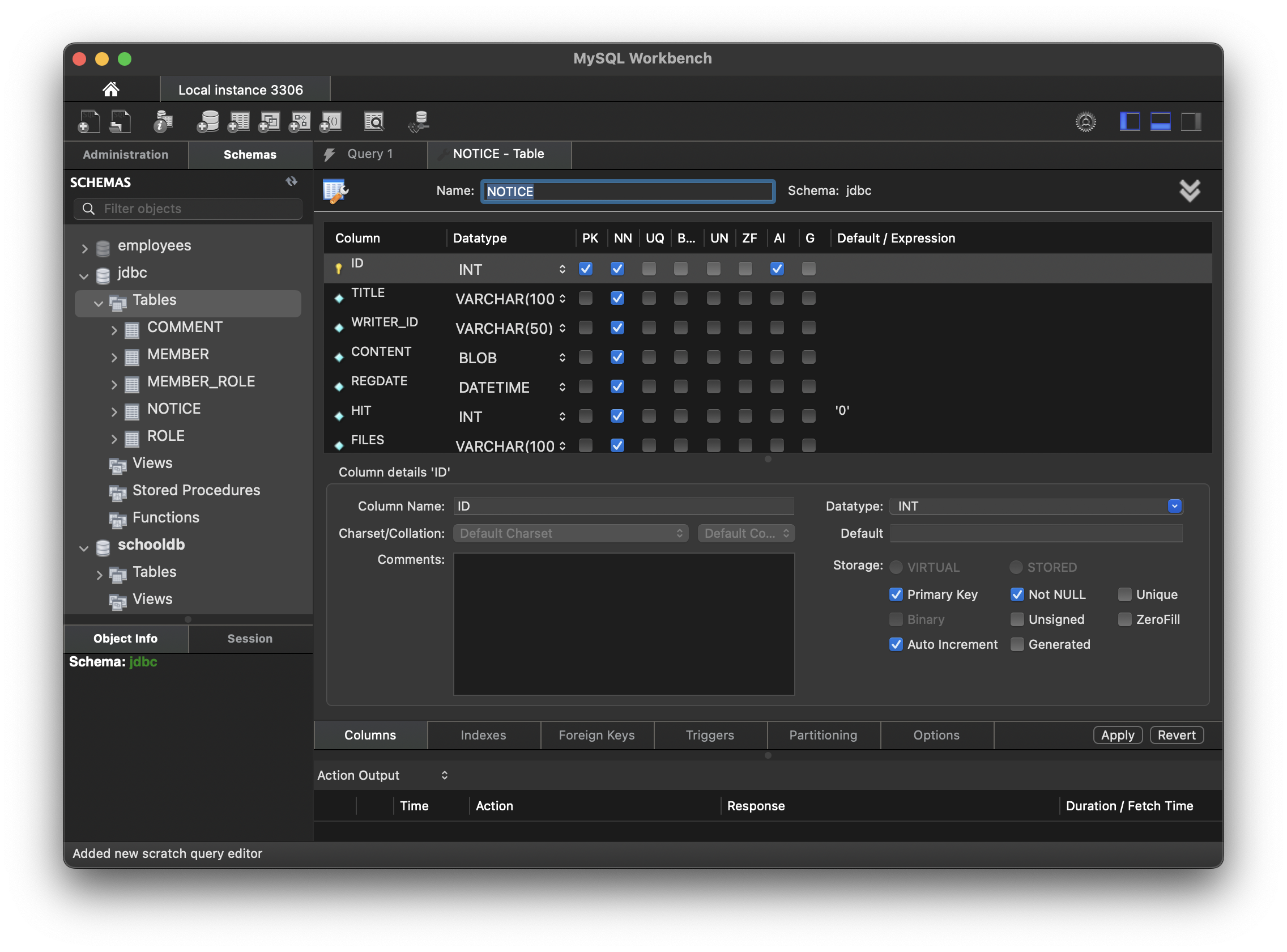 REGDATE는 현재 시각을 넣고, HIT는 조회할 때마다 하나씩 증가하며 ID는 1부터 시작해서 하나씩 증가할 것이다.
