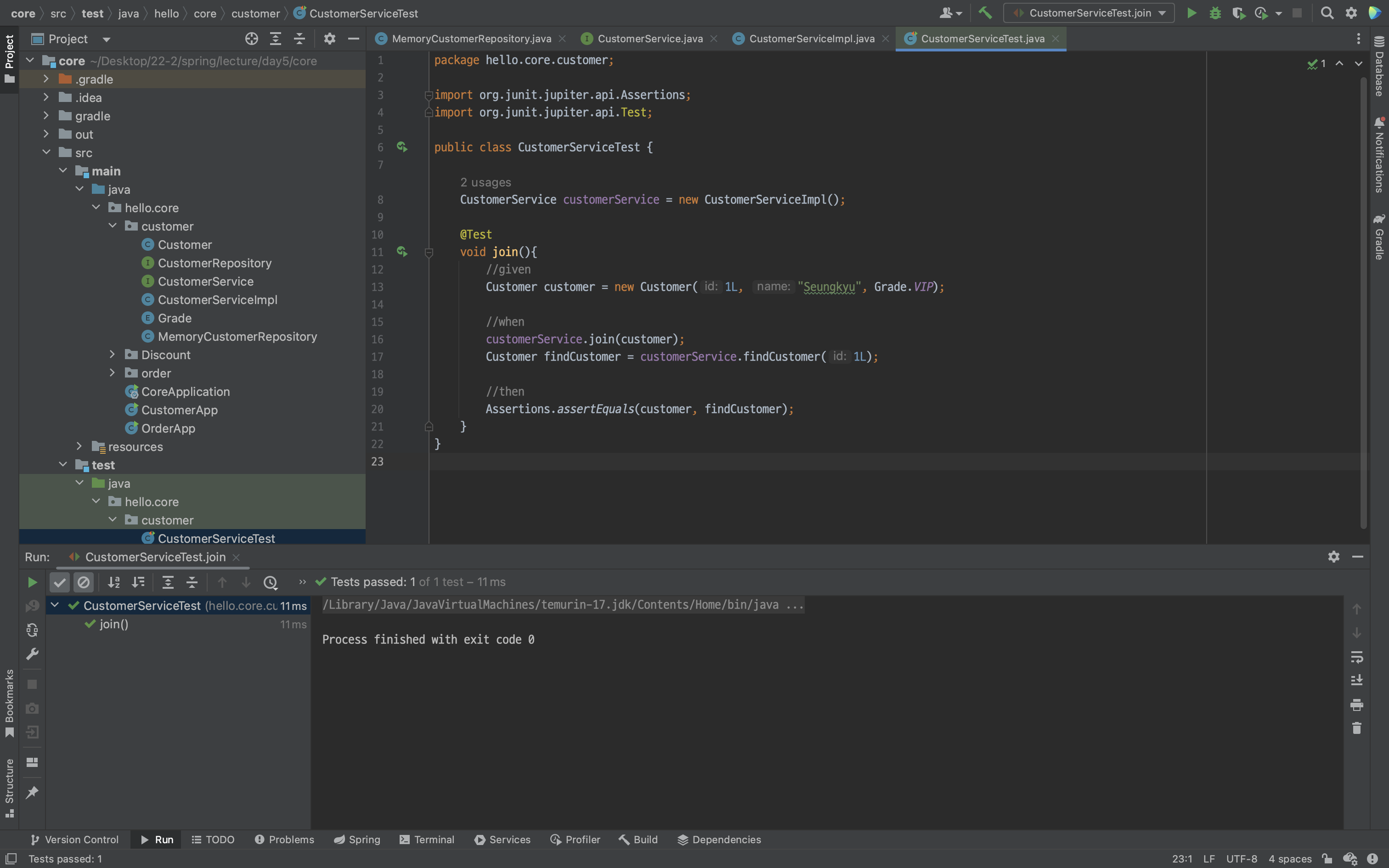 Customer customer = new Customer(1L, "A", Grade.VIP);