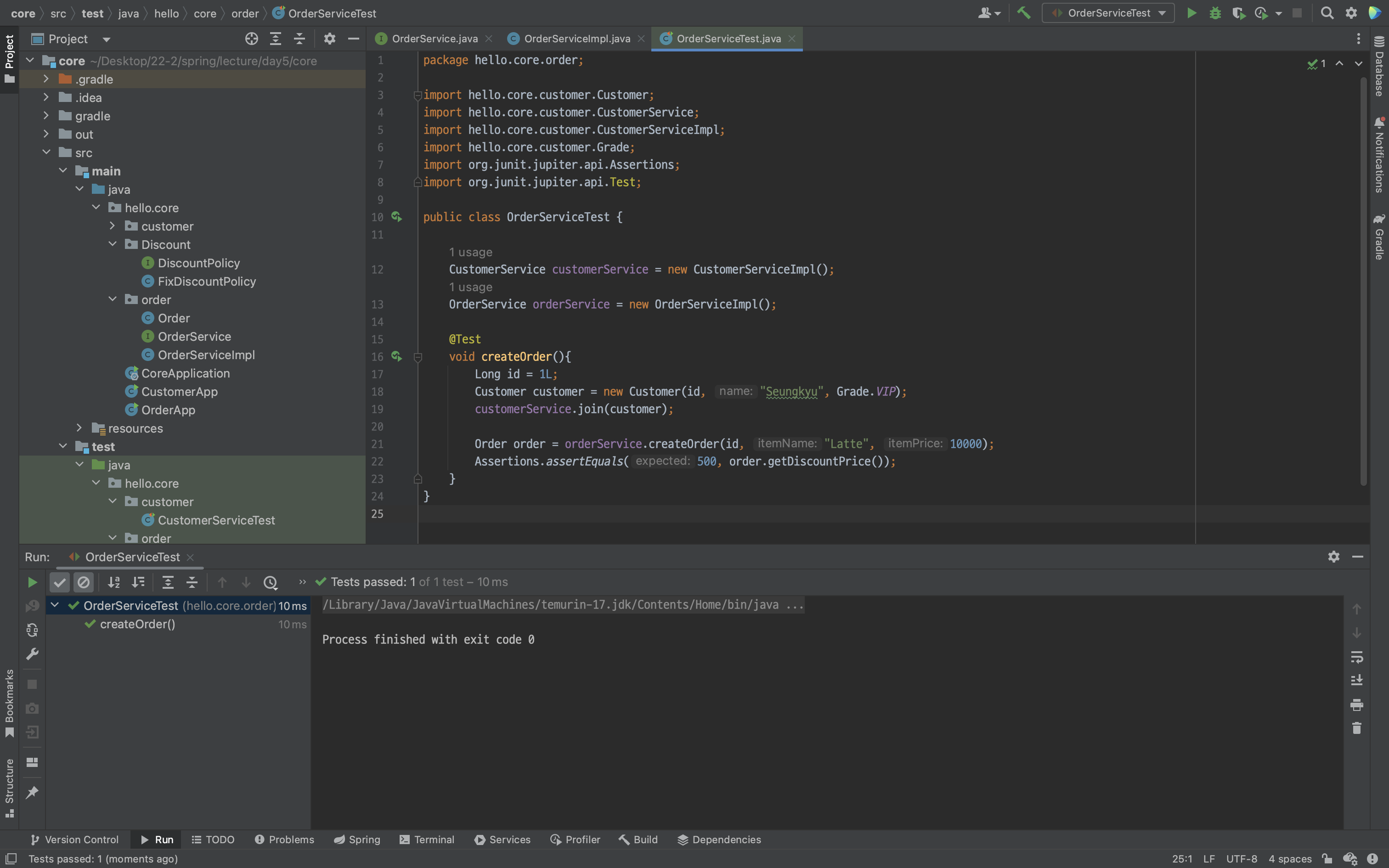 int discountPrice = discountService.discount(customer, 10000, "rateDiscountPolicy");